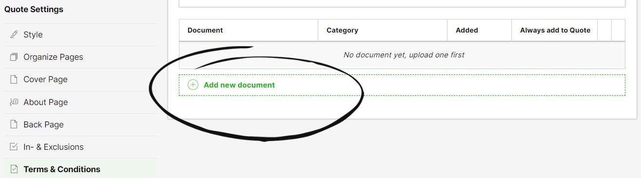 If you don’t check ‘Always Add to Quote’, you have the option to select it for every individual quote or template you create. New Terms and Conditions added to individual quotes will also show up here.