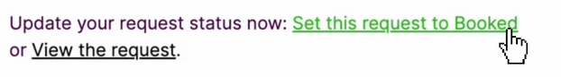 Scroll down the email and click on the green 'Set this request to Booked'.