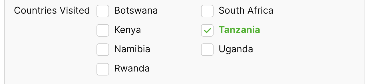 4. Countries visited: Here you can select the countries where your itinerary will take place by marking the checkbox(es) accordingly. Based on the countries you selected, SafariOffice will provide you with the correct content for your quotes and templates.