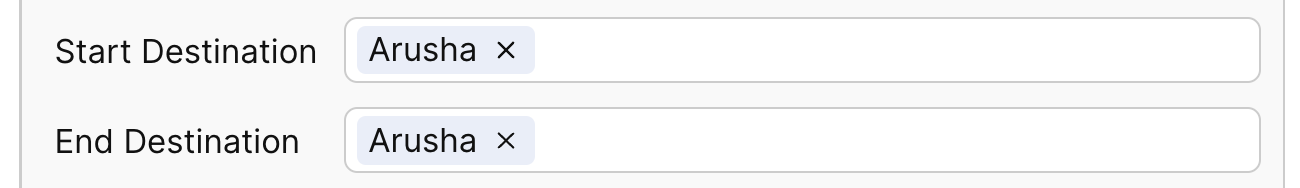 5. Start Destination and End Destination: Here you can fill in the start and end destination of your itinerary. Please list only one city per text field. You are also able to customize this field if you do not see your desired destination from the auto-suggested destinations.