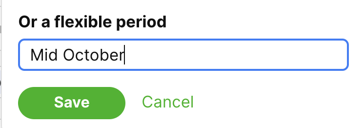 If your clients do not know the exact date yet, you can also indicate an estimated time period by typing into the field 'Or a flexible period', and press 'Save'.