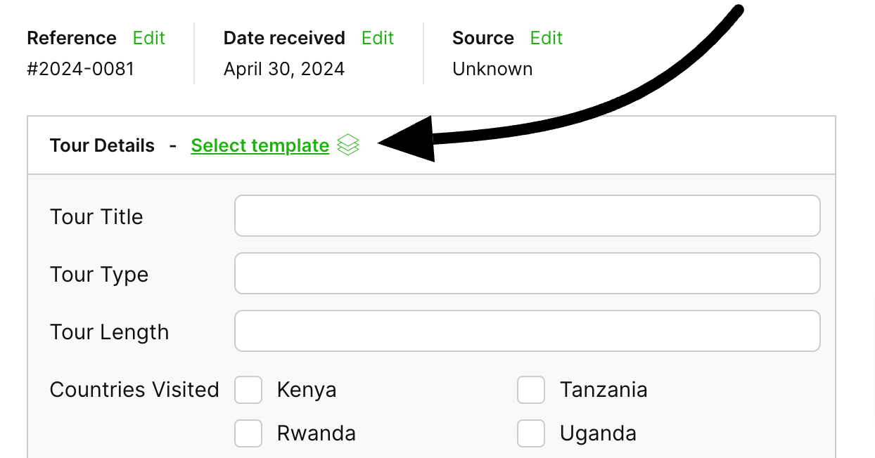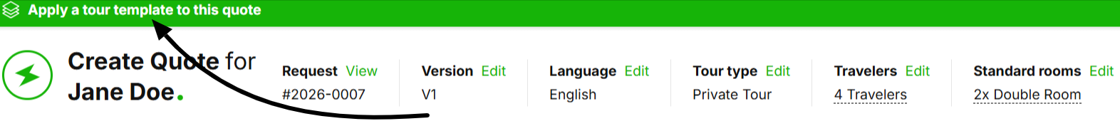 Instead of entering the tour details manually, use the "Select Template" option to apply the tour template itinerary that your client is requesting.