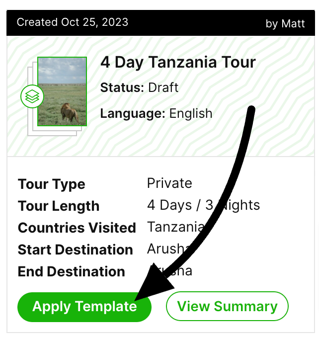 Using tour templates will save you a lot of time when sharing quotes with your clients as you don't fill in the day-to-details all over again. All you'll do is add client information to personalize the template, and make edits where necessary.