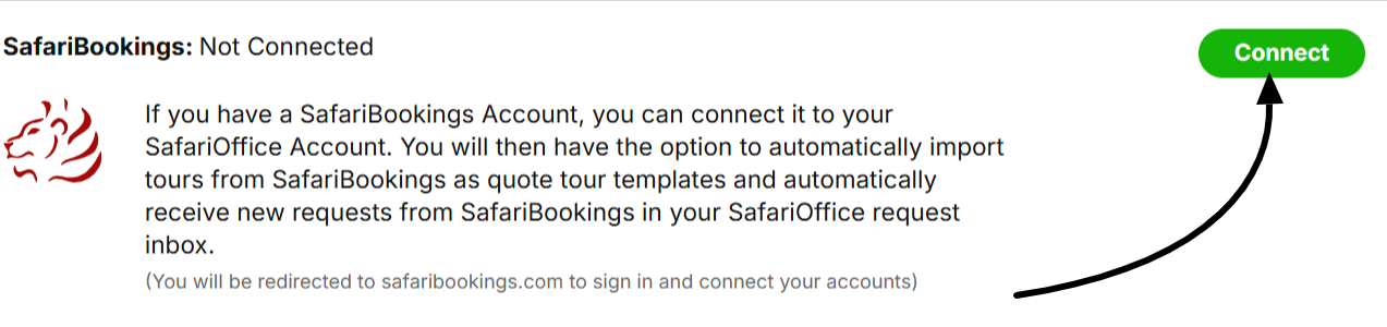 You'll be re-directed to SafariBookings, under the Accounts dropdown, select SafariOffice.