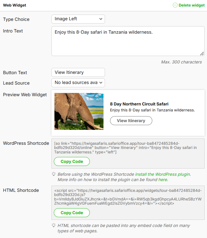 Choose if you want to use the WordPress Shortcode or HTML shortcode.