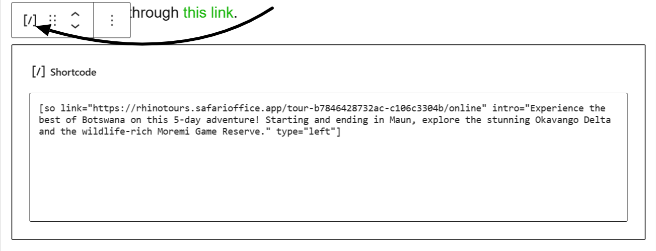 Switch to the "Shortcode" or "HTML" view in the editor.