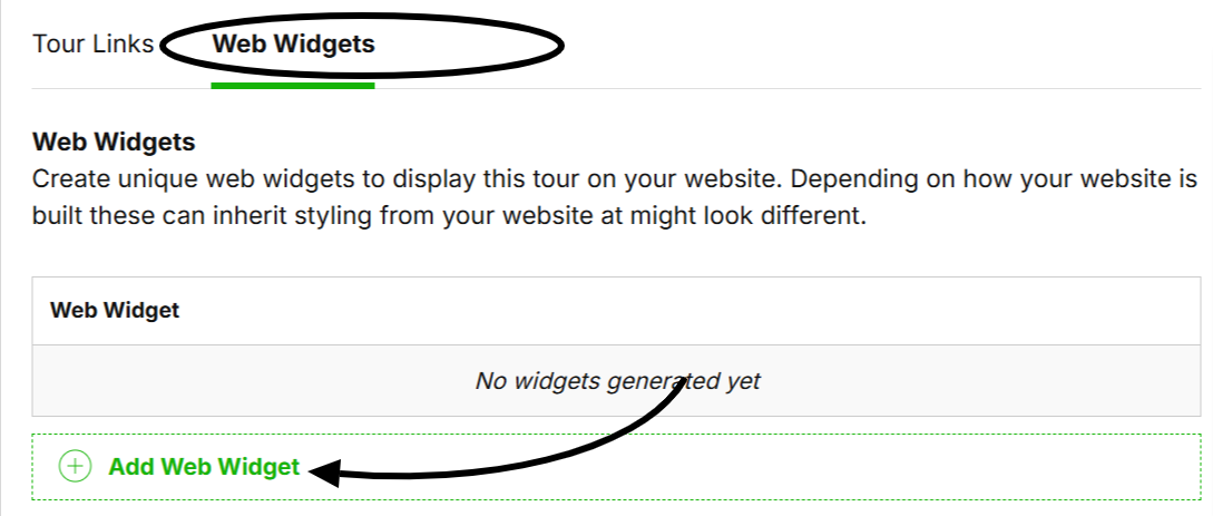 Here, you'll find Widget Settings, where you can choose the default look for your tour, including the view and CTA button.