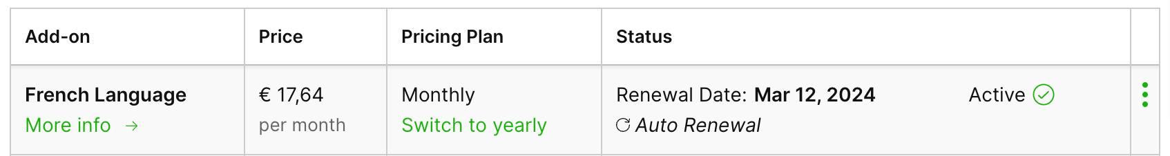 With a monthly plan, you have more flexibility as you commit to a maximum of one month. It's good if you have a very flexible workforce or want to try out a new Add-on for a short period without wanting to commit for a longer period.