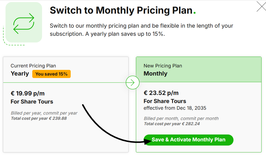 Choose Switch to monthly OR Switch to yearly depending on your current plan.