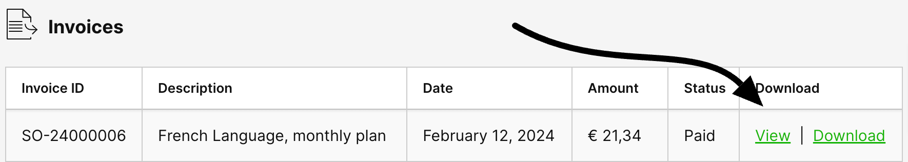 Here you can view the invoices for your subscriptions.